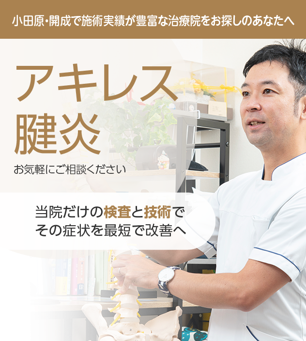 アキレス腱炎は早めに対処すればするほど、改善までの期間も早くなります。一人で悩むことなく、お気軽にご連絡ください。